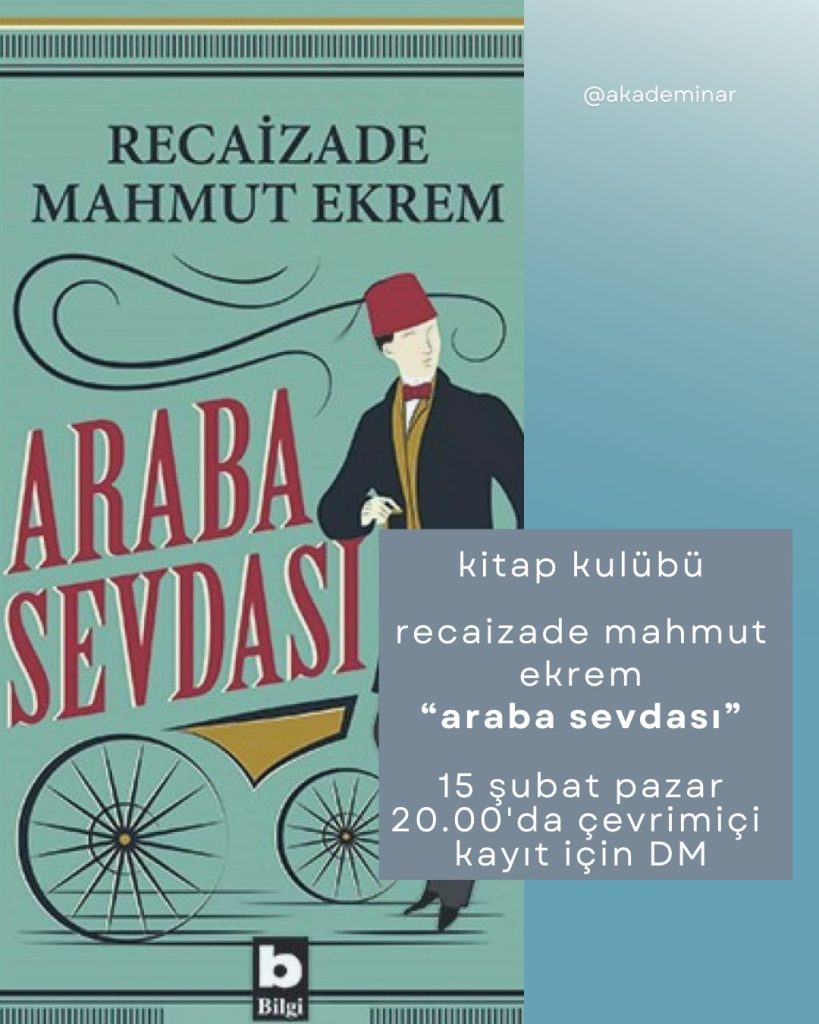 Ocak ayında okunup şubatta buluşması yapılacak kitabımız Recaizade Mahmut Ekrem’in Araba Sevdası